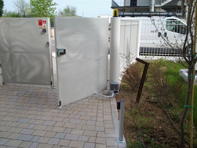 Sono state installate inoltre le fotocellule, il lampeggiante, pulsantiera per apertura con codice.